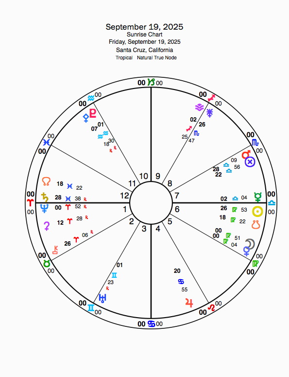 Virgo Sun & moon – preparing us for tomorrow’s new moon in Virgo & solar eclipse – at the very end of Virgo – 29 degrees Virgo. The degrees of 0, 15 & 29 are important degrees in astrology charts.