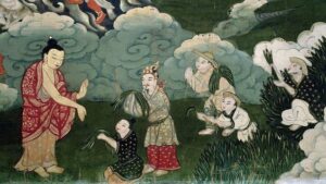 After his Enlightenment, the Buddha was given a choice of two paths – to rest in Nirvana (heaven) or to remain with the people of the Earth, sharing his Light with humanity.