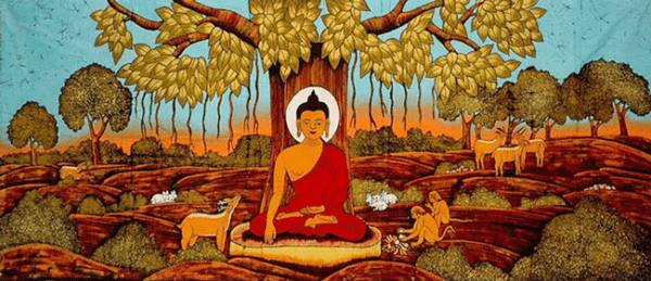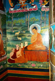 The Buddha presented his Eightfold Path to five of his closest disciples in the deer park in Benares.